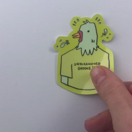 Ever feel like a scared, freak, chicken person in a sea of normies? You might be an undiagnosed baddie. Grab a sticker and show other chickens your allyship.